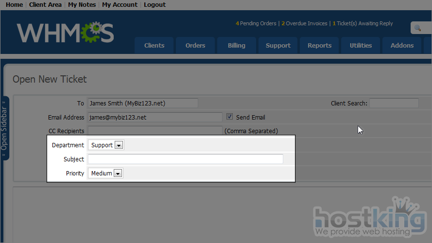 This completes the demonstration. Now you know how to open a new support ticket as an administrator in WHMCS.