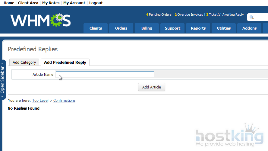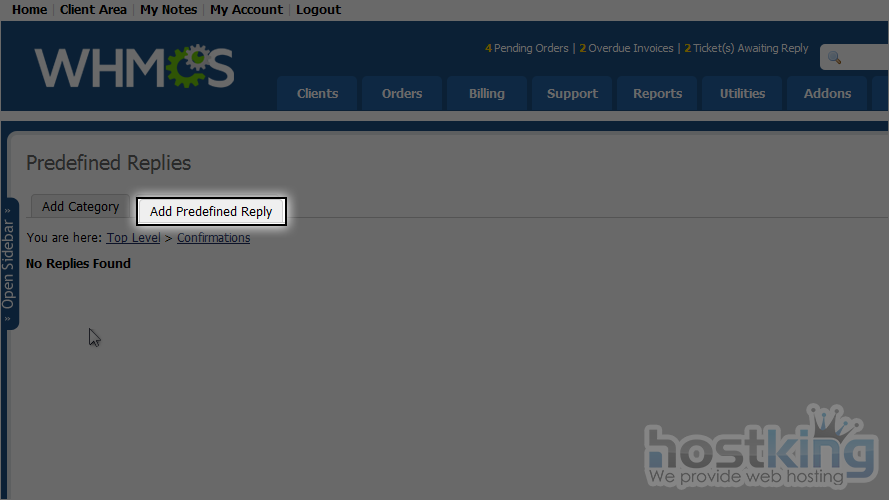 This is end of the tutorial. Now you know how to manage predefined replies in WHMCS.